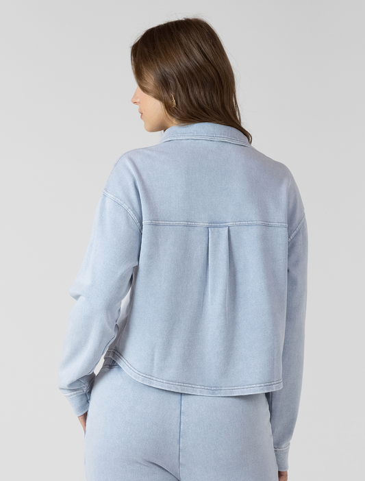 CROPPED KNIT OVERSHIRT - WASHED LIGHT BLUE