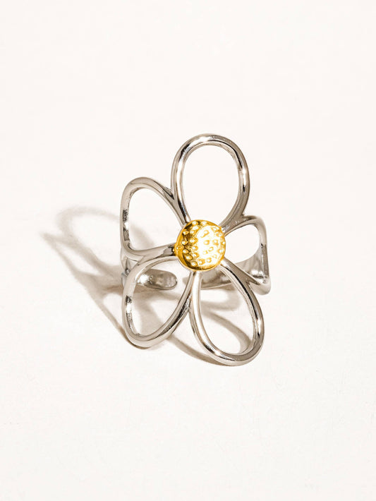 Finn 18K Gold Non-Tarnish Flower Chain Ring: Yellow Gold