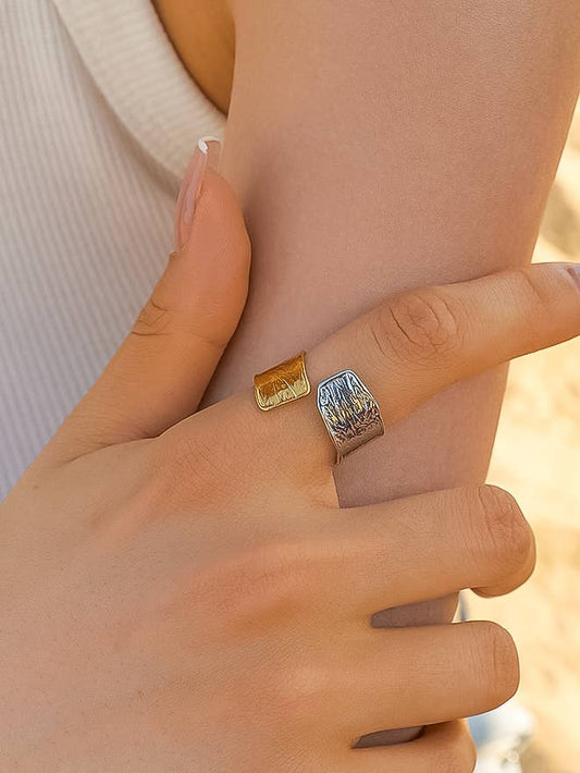 Emmy 18K Gold Non-Tarnish Textured Open Ring: Multi-Colored