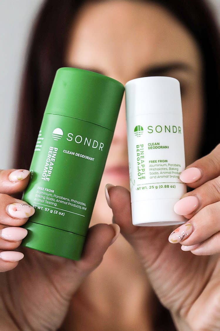 Pineapple bergamot deodorant, like all other SONDR deos, is, and always will be free from aluminum, parabens, phthalates, baking soda and of course, animal testing and products.