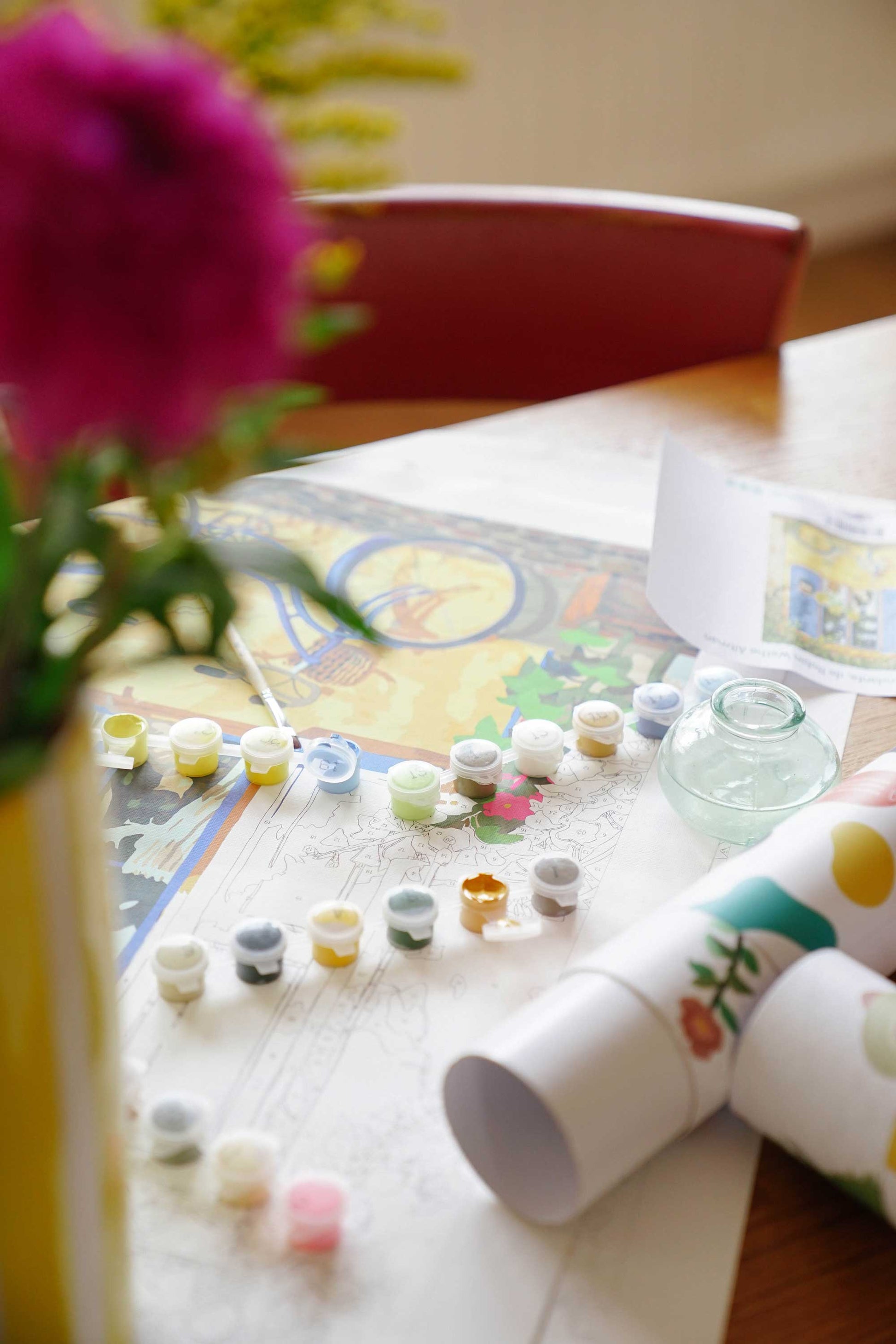 Each paint-by-numbers kit contains everything you need to get started & finish your canvas. Here's the exact list: